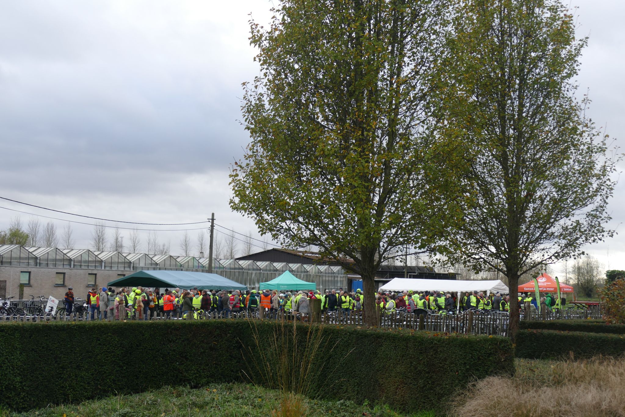 Een groep vertrok in Wachtebeke en een andere in Lochristi om samen te komen aan de Puyenbrug. Ze waren met zo’n 400, die de kilte en grauwheid van de laatste novemberdag trotseerden om onder politiebegeleiding hun protesttocht te rijden.