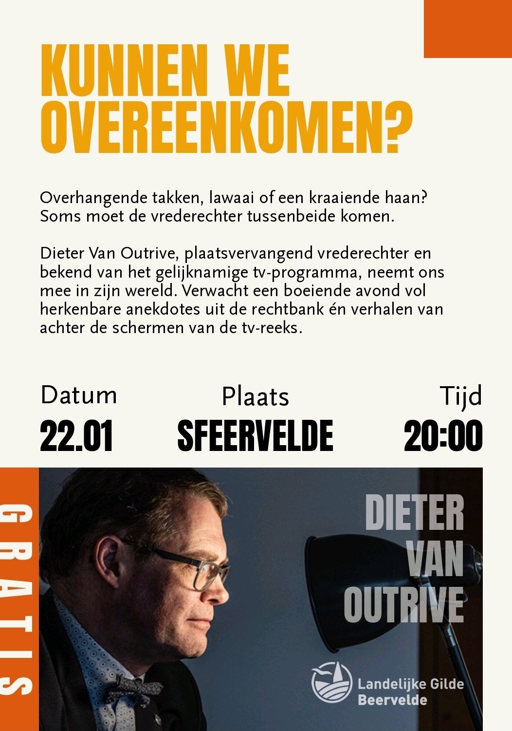 Vanavond komt vervangend vrederechter Dieter Van Outrive naar Sfeervelde.